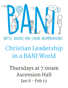 In a BANI world—brittle, anxious, non-linear, and incomprehensible—Christian leadership requires more than confidence and control. In this six-week series, we will explore how God-centered leadership calls us to faithfulness, humility, and courage amid uncertainty. Together, we’ll discover how God equips us to lead wisely when the world feels unstable.
